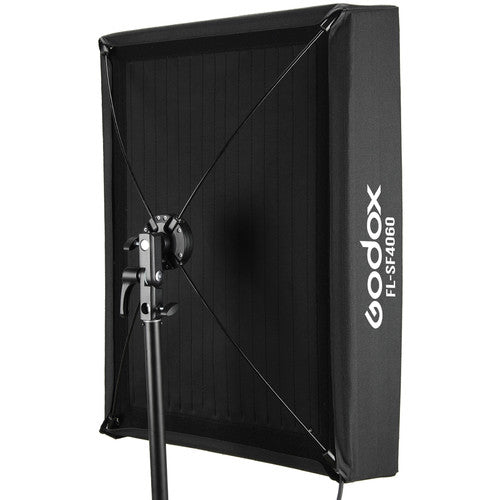 This Softbox with Grid for Flexible LED Panel from Godox fits the FL100 Flexible LED rectangular panel by attaching directly to the panel's included X-mount holder. Featuring a silver interior, this softbox assembles in minutes, and may be used with or without the removable front diffuser. The included fabric grid creates a more directional output and helps to decrease potential lens flare.